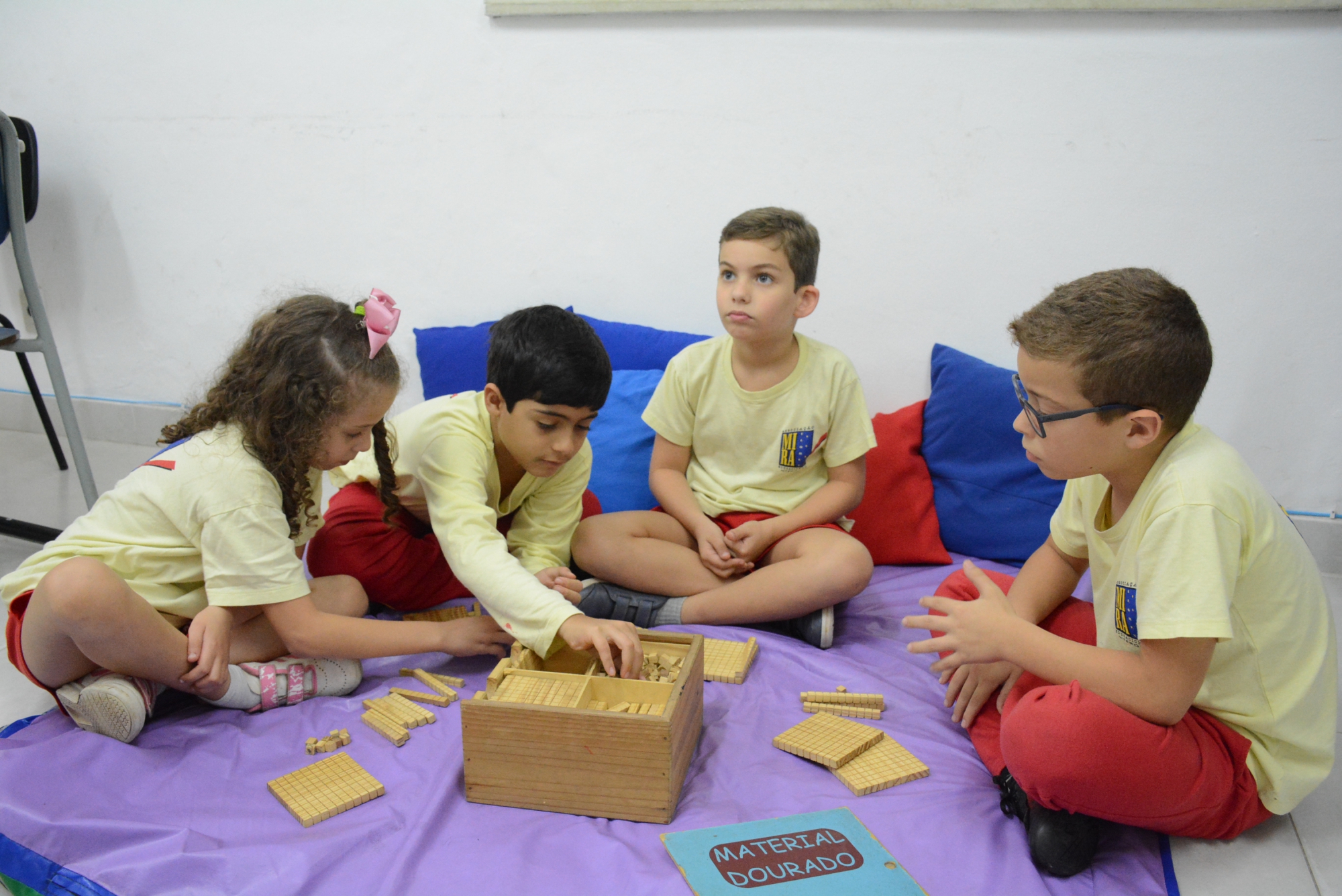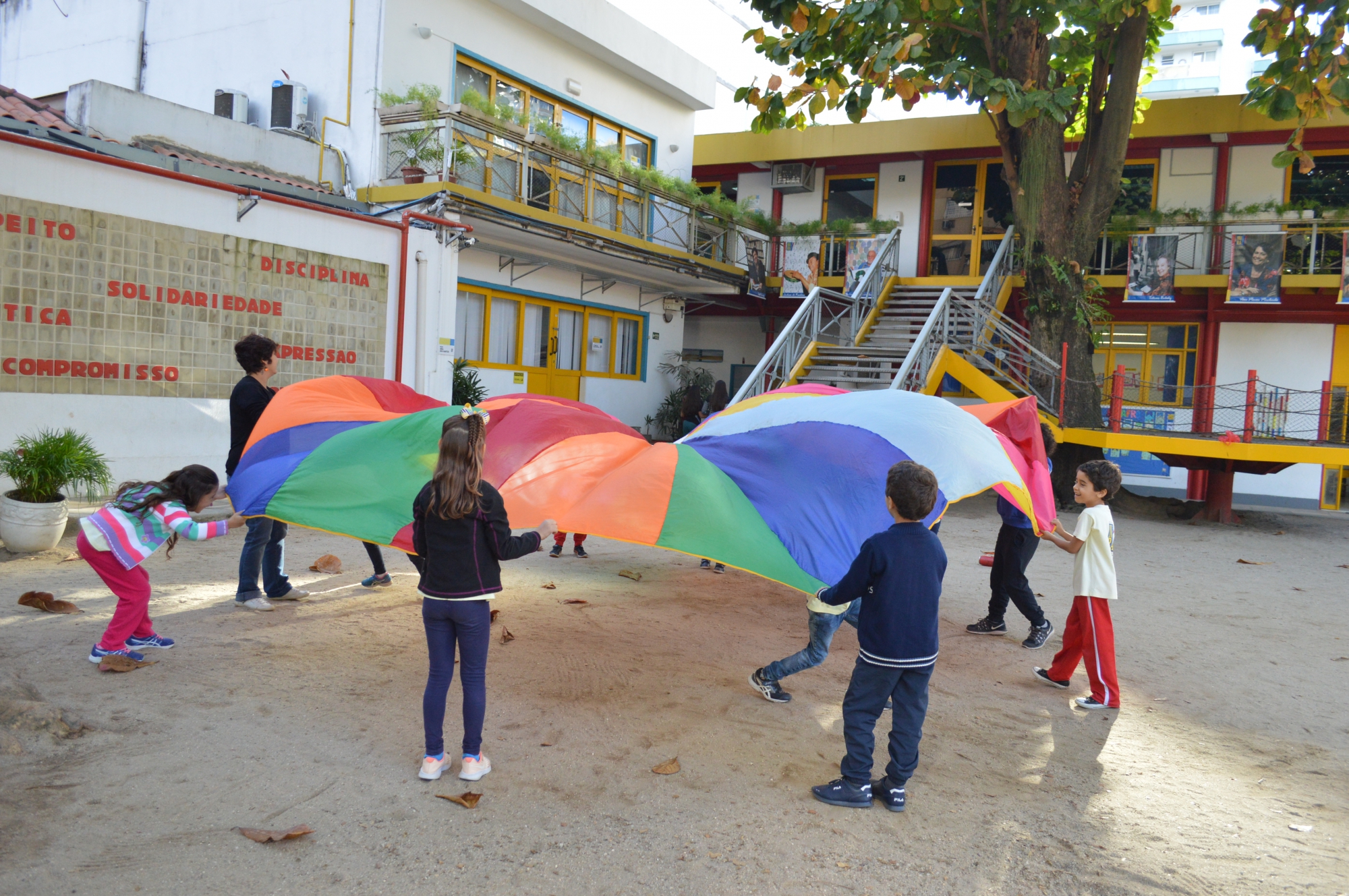 Trabalhamos com as disciplinas obrigatórias e enriquecemos o currículo com atividades como xadrez, yoga, informática, cinema, teatro e outras