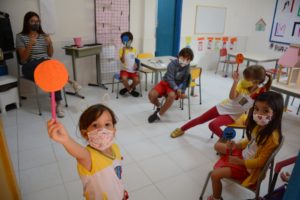 O material didático é totalmente desenvolvido pelas professoras, a partir da demanda e curiosidade da turma e está embasado na BNCC.