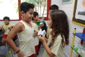 Há um grande incentivo para trocas entre estudantes de diferentes anos de ensino. As turmas são multisseriadas e, frequentemente, as professoras convidam os estudantes a elaborarem projetos ou ações que envolvam outras turmas. Assim, é comum vermos pelo Colégio Mira Niterói, estudantes de diferentes faixas etárias colaborando e construindo conhecimento uns com os outros.
